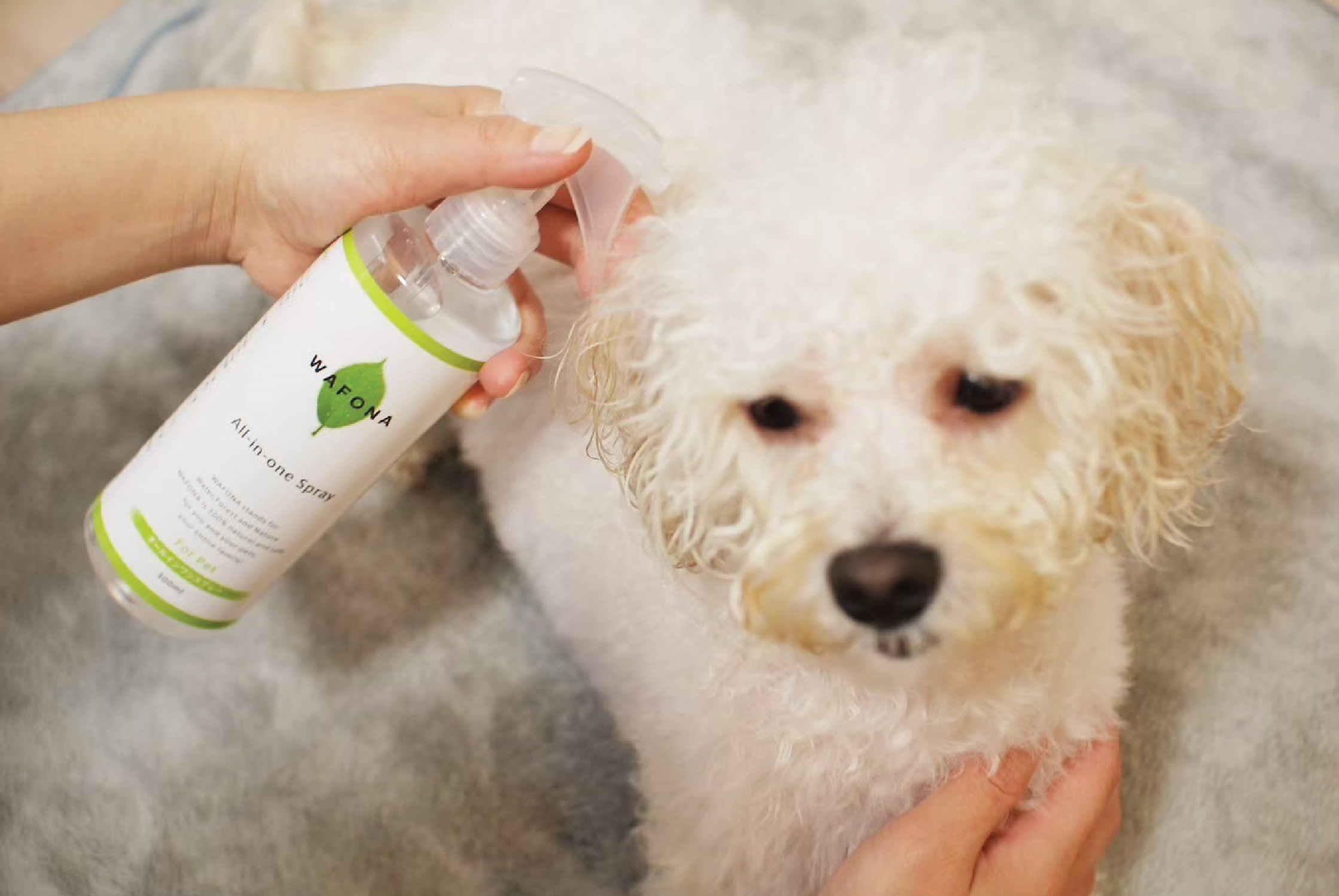 •หลังจากเช็ดตัวสัตว์เลี้ยงของคุณให้แห้งด้วยผ้าขนหนูแล้ว ให้ฉีดสเปรย์ออล อิน วัน แล้วถูให้ทั่วก่อนเช็ดให้แห้งและแปรงขน